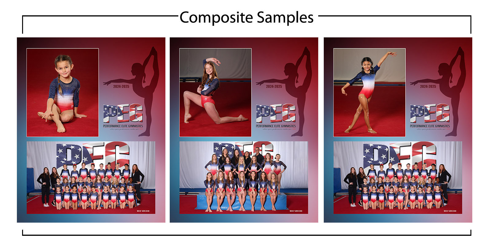 Packages A thru D each have two options - (1) COMPOSITE OPTION: where the individual and group are combined onto one sheet; and (2) INDIVIDUAL PHOTOGRAPHS one where the individual and group are provided as separate photographs. Composites can be ordered in an 8x10 or 10x13 size. Composites are ideal for those who don't wish to separate the group from individual. |